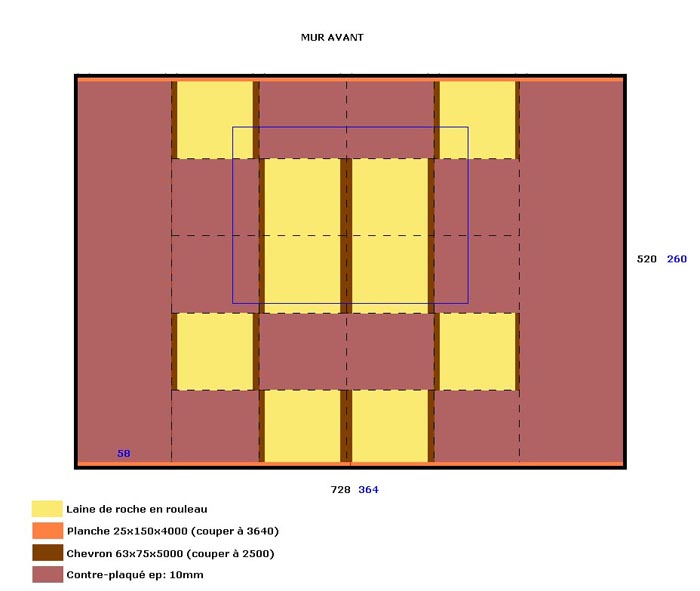 contenant la laine de roche sera recouverte de contre-plaqué,